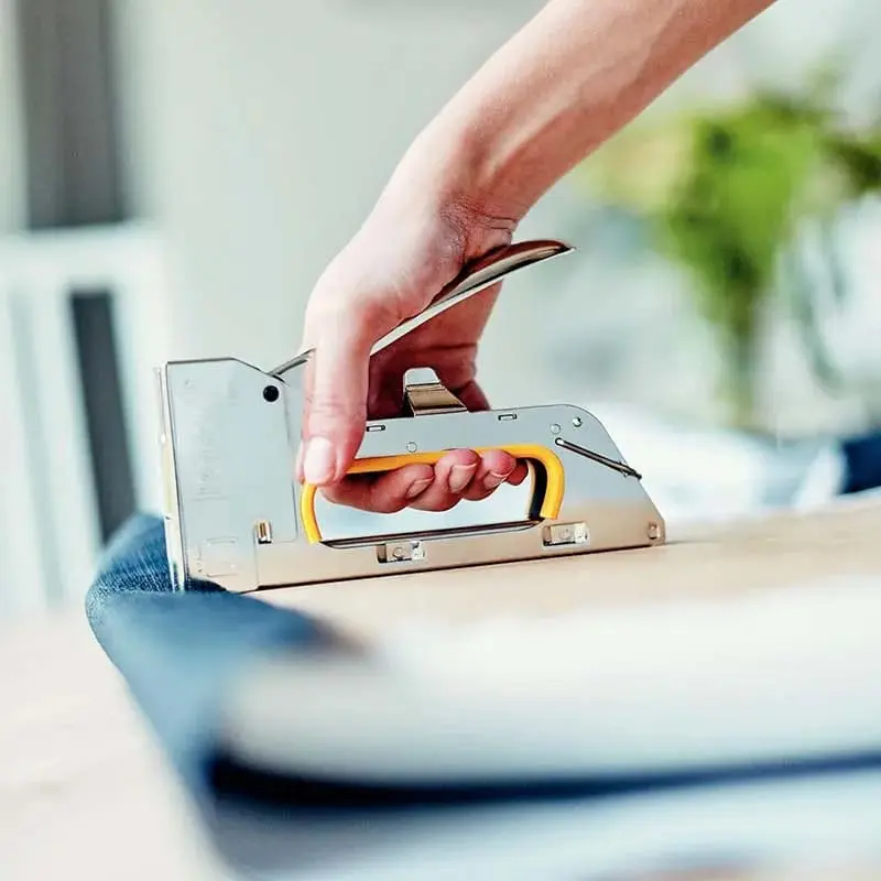 Facile à utiliser, elle permet de fixer bois, tissu, cuir, carton ou plastique avec précision et stabilité.