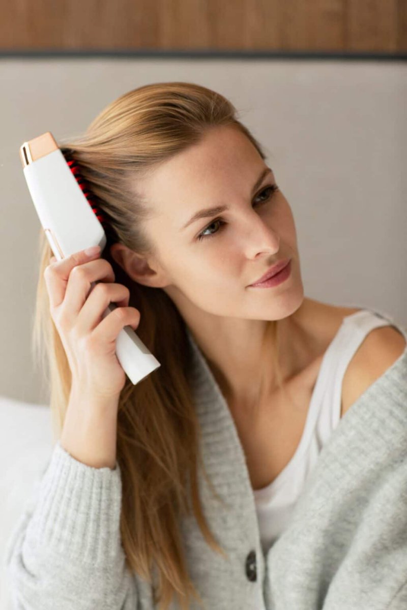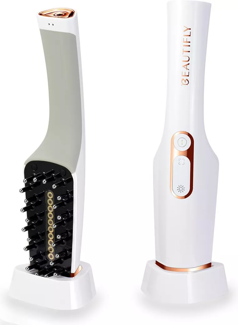 L’appareil utilise la technologie des ondes radio et du laser pour stimuler la croissance des cheveux.