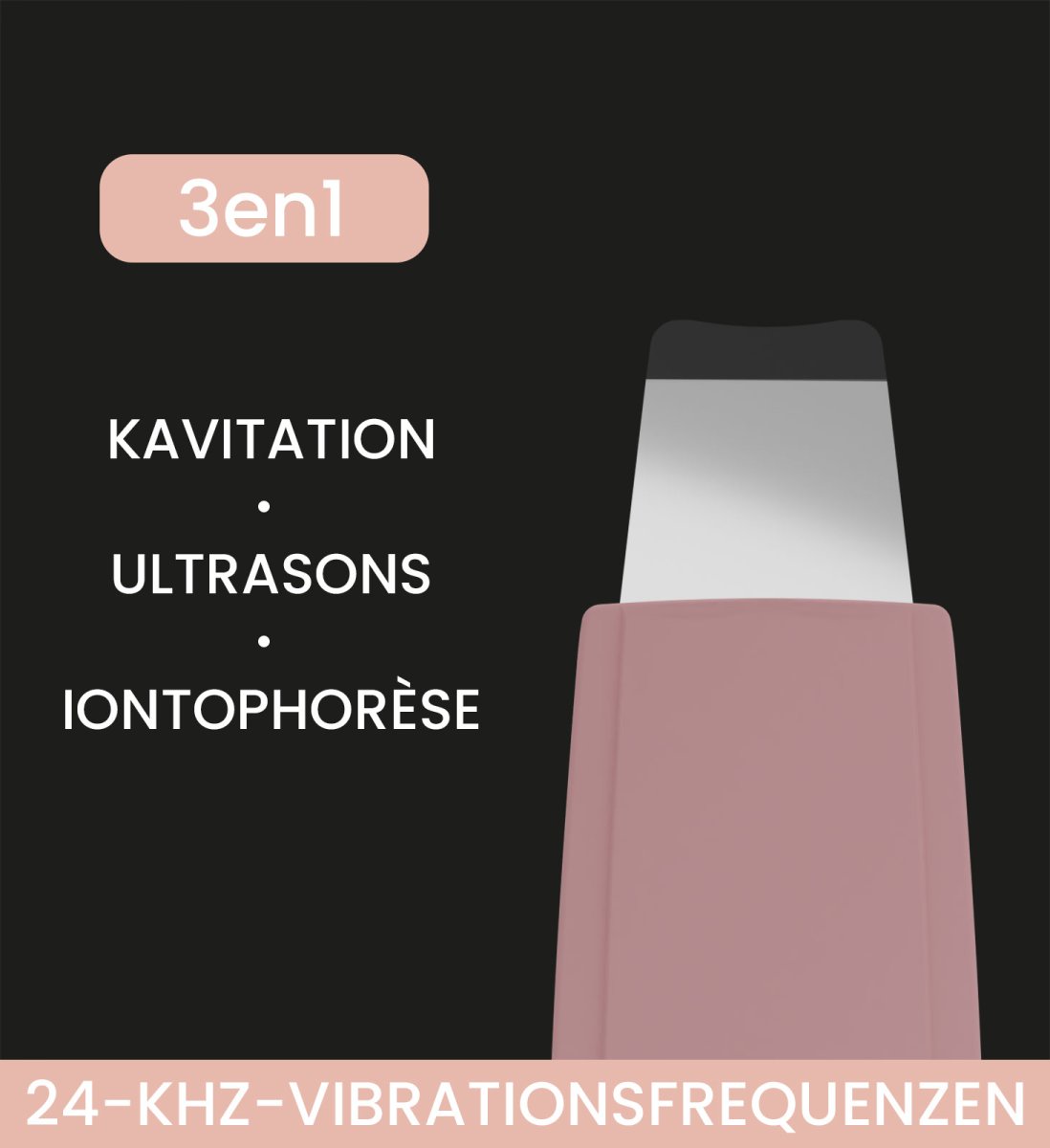 Les vibrations à haute fréquence de 24 kHz peuvent pénétrer la peau à une profondeur d’environ 3-5 mm, ce qui permet d’éliminer efficacement les points noirs, de nettoyer la saleté et le sébum accumulés dans les pores et de se débarrasser des cellules mortes de la peau.