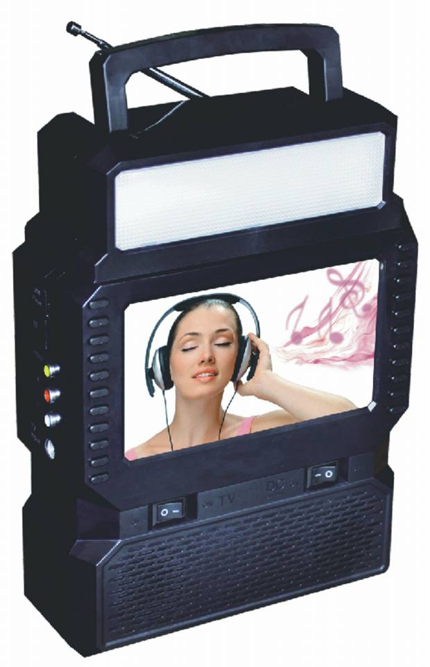 Le baffle portable rechargeable comporte TV, FM ,MP4 Système Model TV 003 SL écran TV7 (4;3, 16;9) Radio Bluetooth avec lampe Led incorporer Entrée USB pour chargement de téléphone chargement AC /DC Support carte mémoire et flash disc