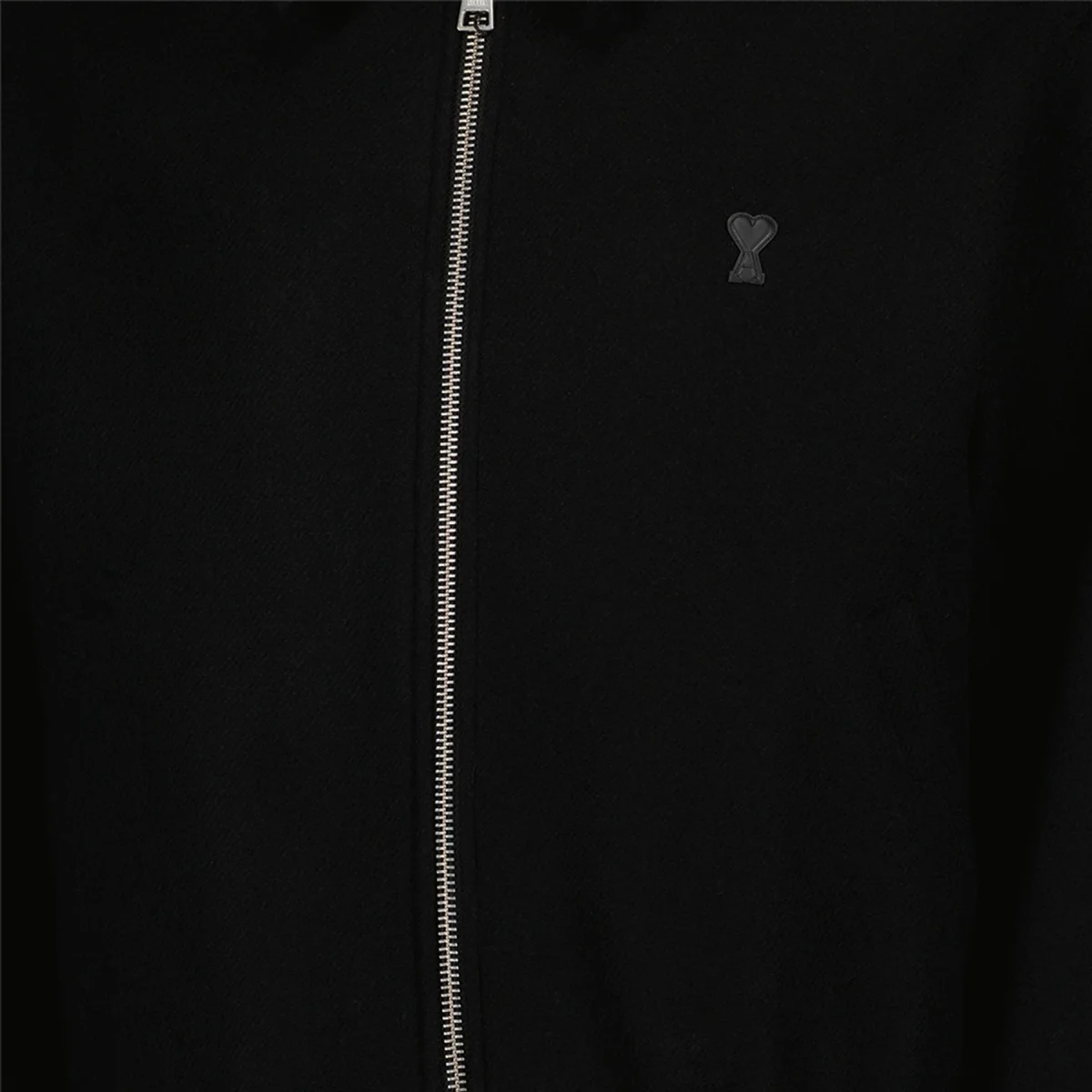 Blouson en laine AMI Paris collection Automne-Hiver 2024 pour Homme. Réalisé en laine. Article Couleur noir. Col classique et Manches longues.