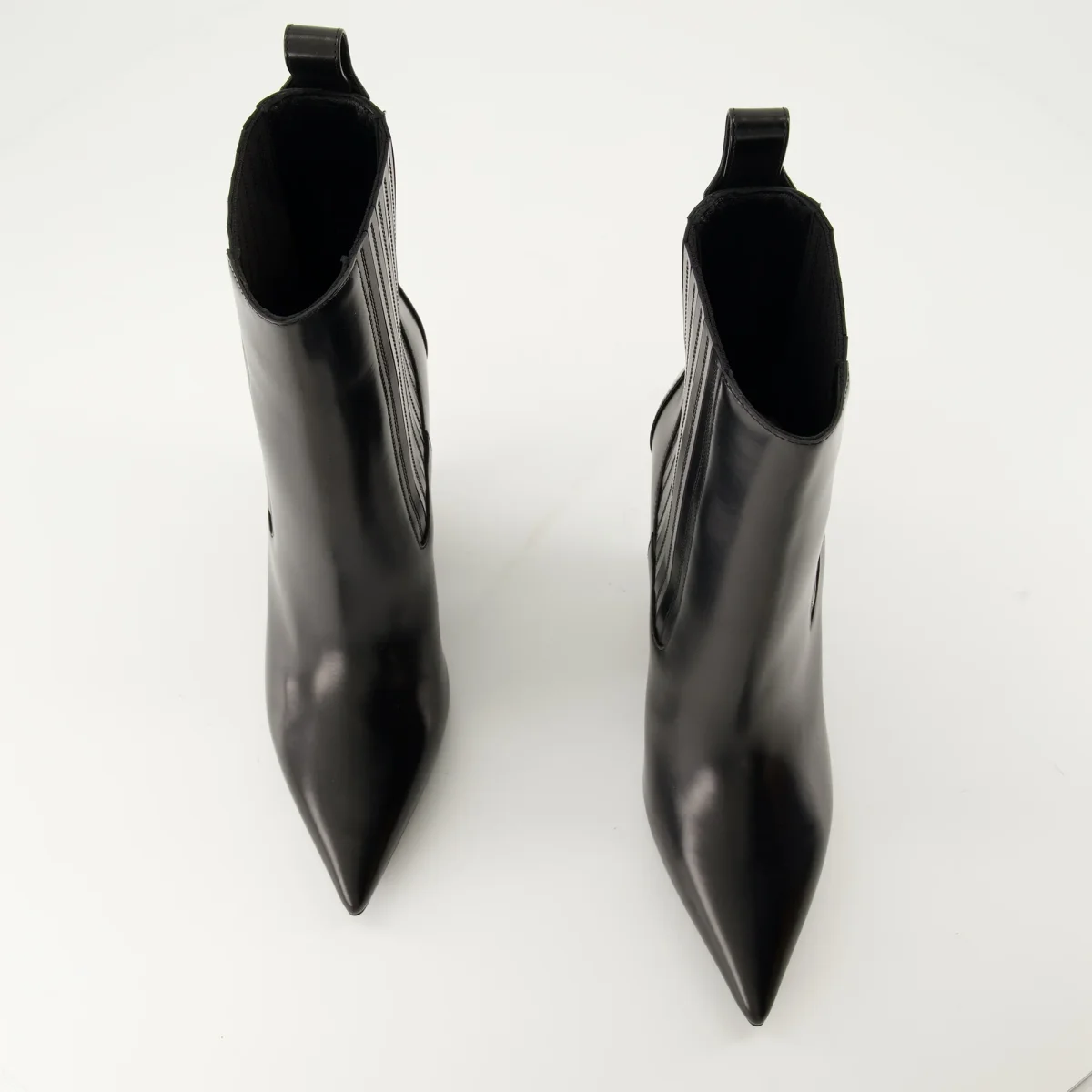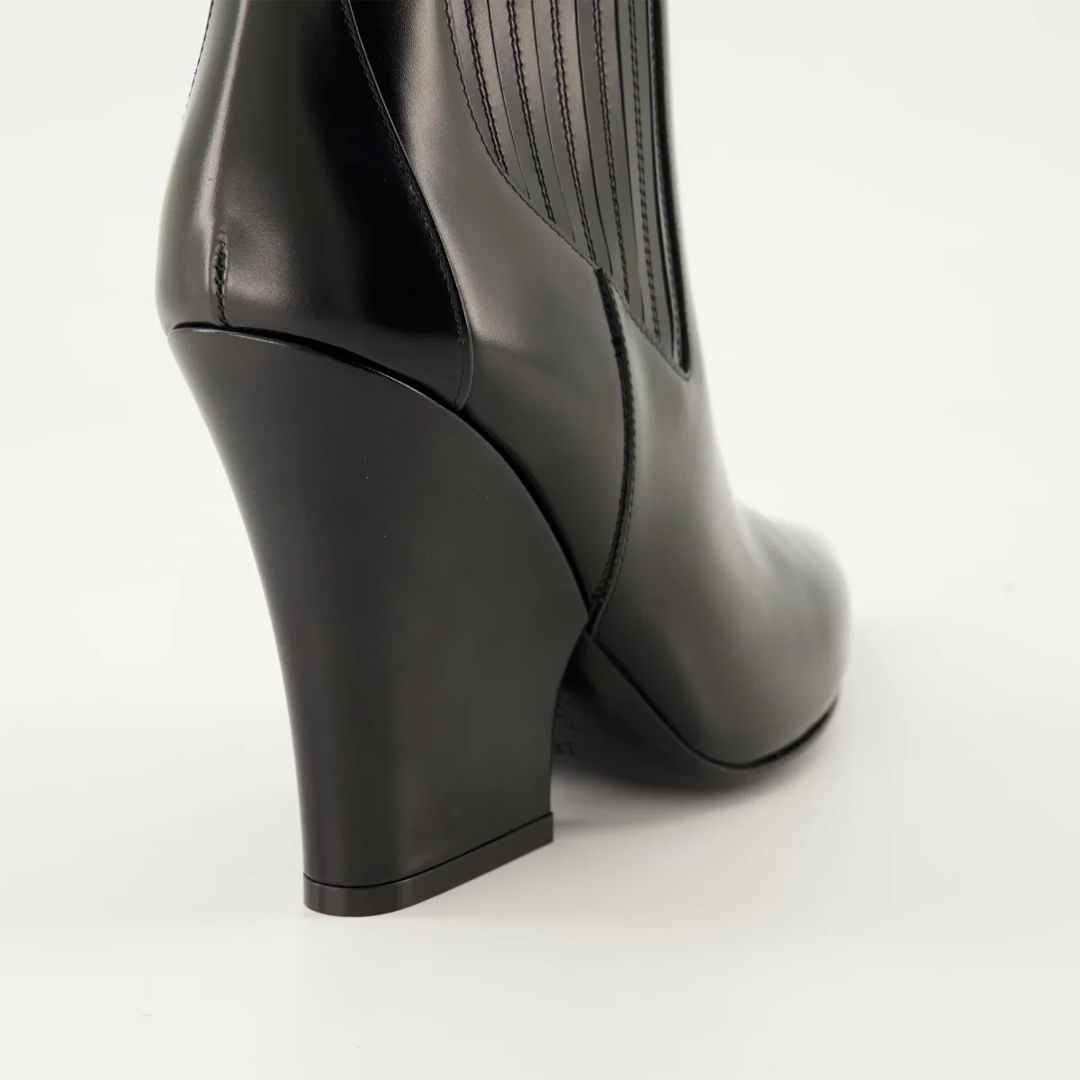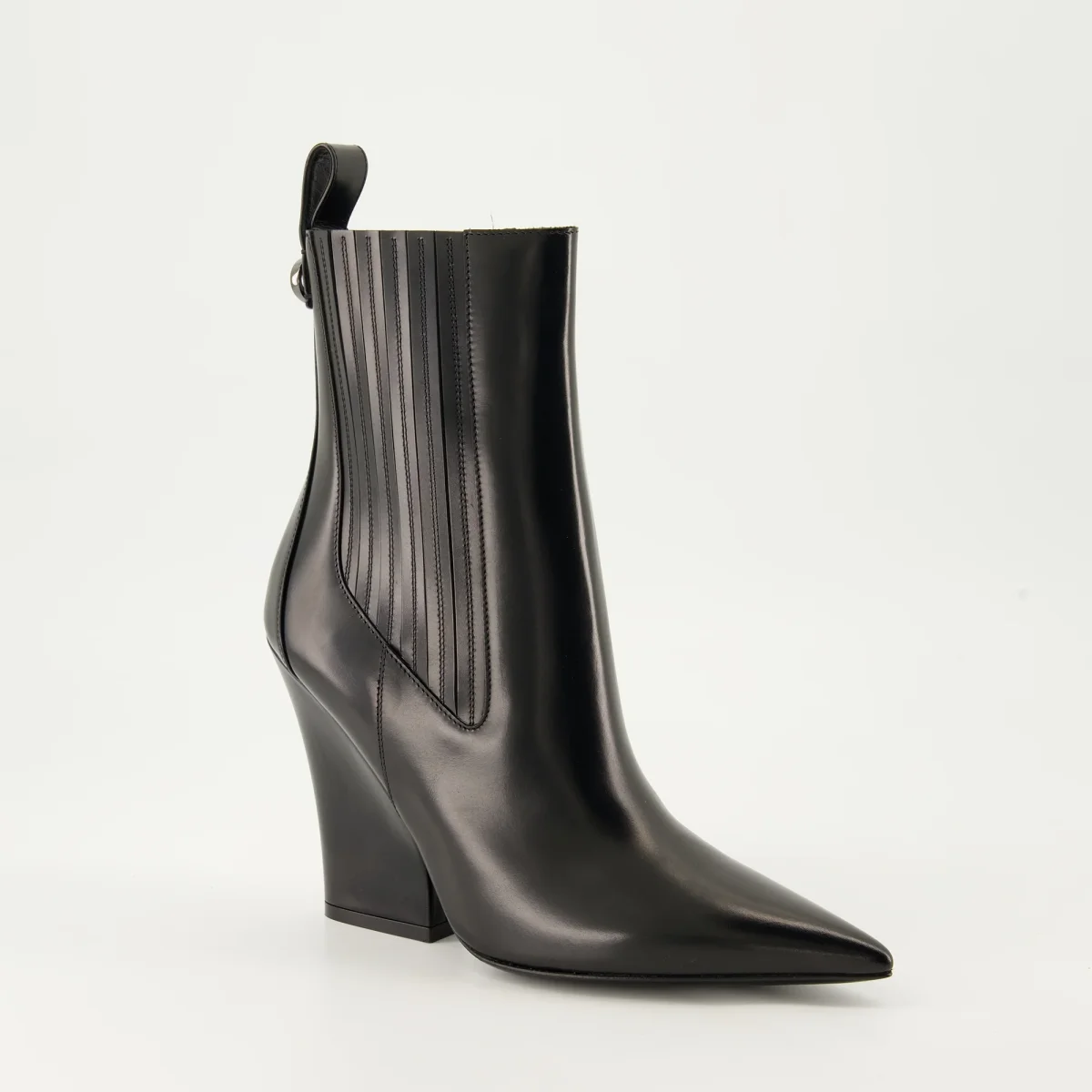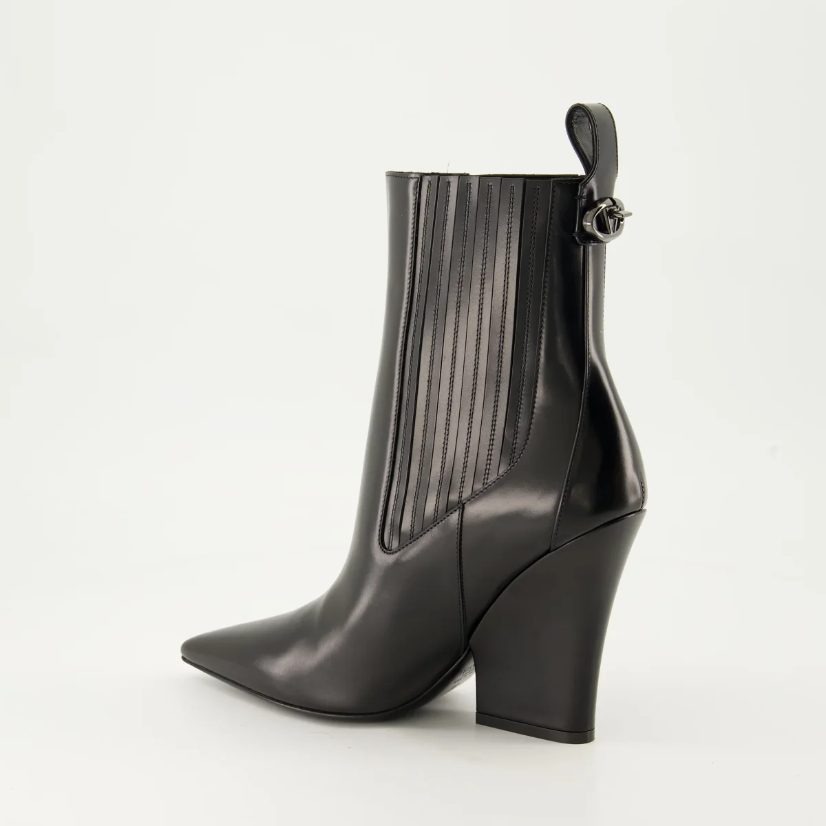 Bottines Beatles VLogo Valentino Garavani collection Automne-Hiver 2024 pour Femme. Réalisé en cuir brossé. Article Couleur noir. Bout pointu et Semelle en cuir.