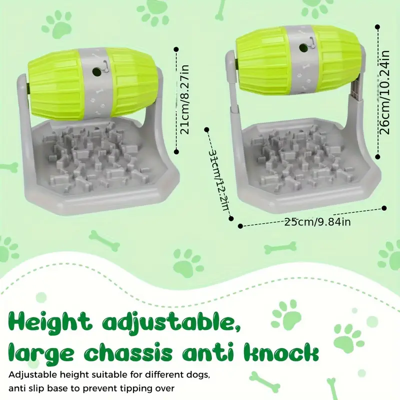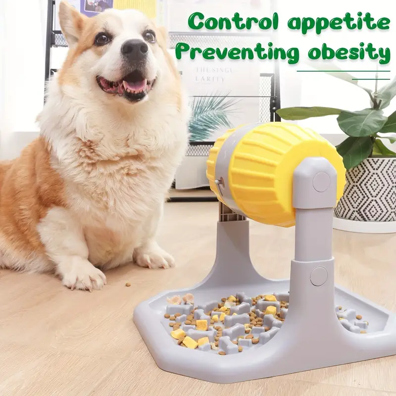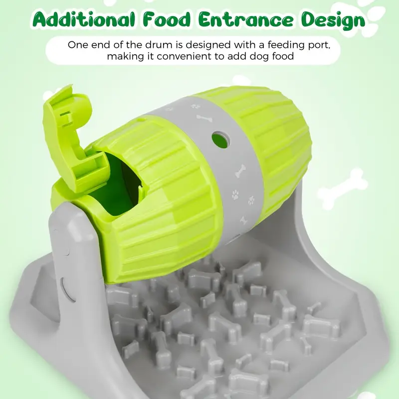 Ce distributeur interactif de croquettes est concu pour ralentir l’ingestion, stimuler le cerveau de votre chien et eviter l’obesite. Le chien doit faire rouler le tambour pour faire tomber les croquettes dans la gamelle speciale anti glouton. Un moyen ludique et sain de nourrir votre compagnon.