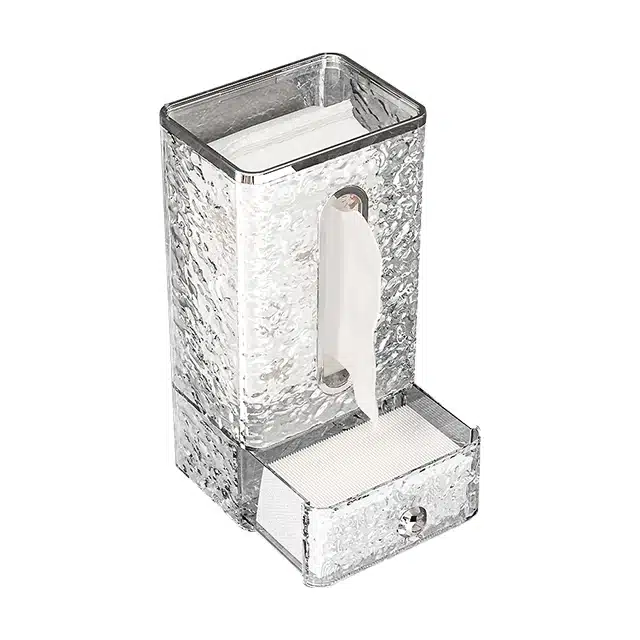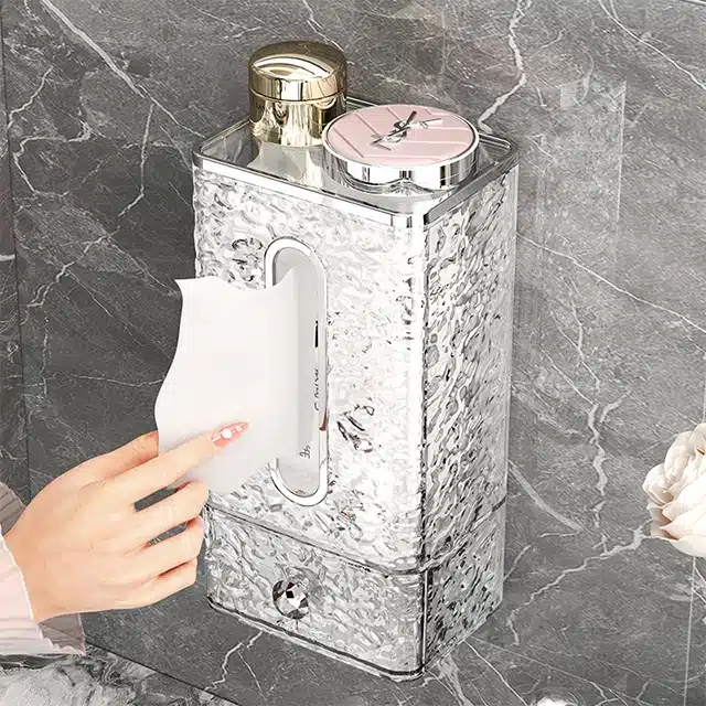 Ajoutez une touche de raffinement à votre intérieur avec ce distributeur mural de mouchoirs luxe avec tiroir, au design effet cristal argenté. Élégant et multifonction, il est l’accessoire parfait pour les salles de bains modernes, les coiffeuses glamour ou les toilettes d’invités.