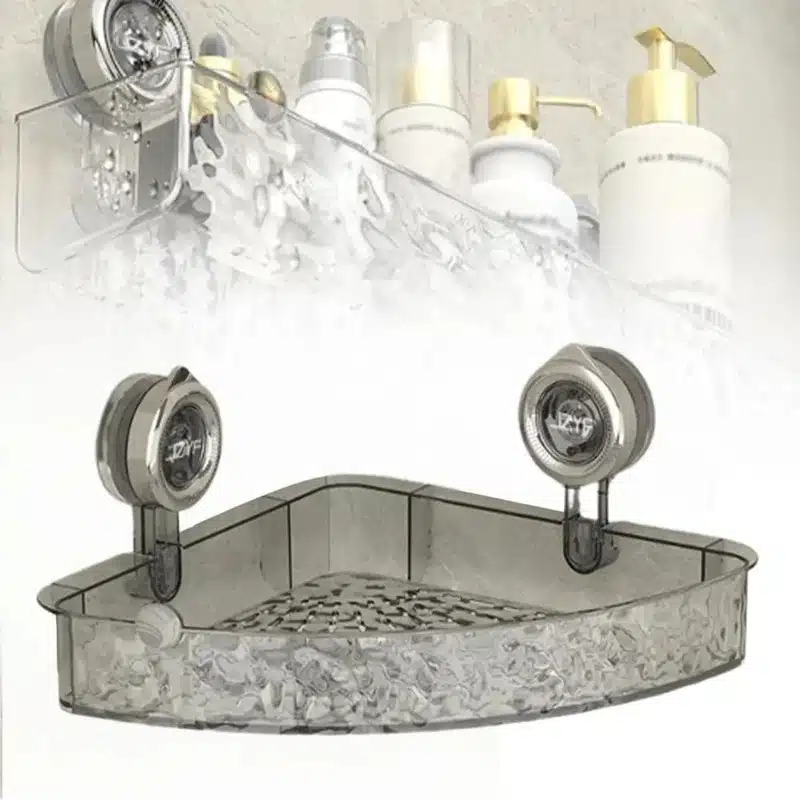 Étagère de coin murale avec ventouses – Gris