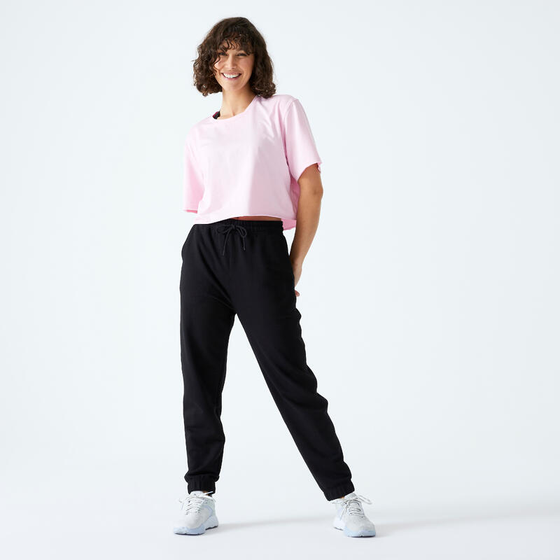 Pantalon-Fitness-Femme-Coton-Regular-Essentiel NOIR