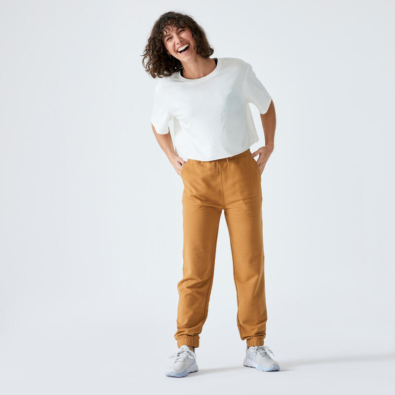 Pantalon-Fitness-Femme-Coton-Regular-Essentiel