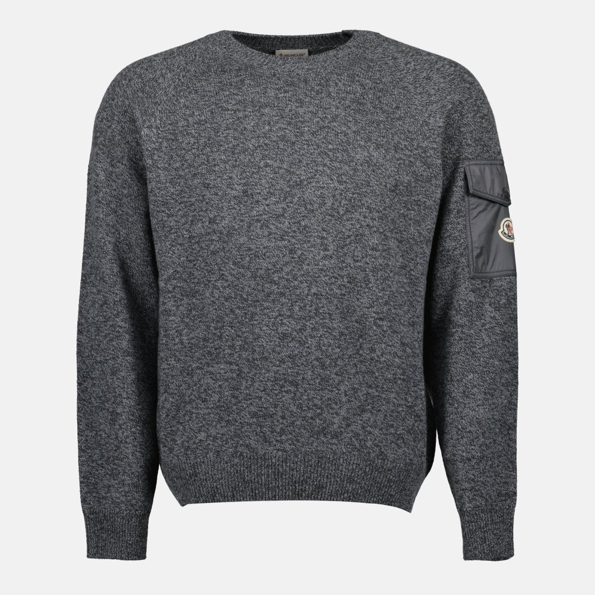 Le pull en laine et cachemire gris de Moncler est un vêtement pour homme de la collection Automne-Hiver 2025. Il présente un col rond, des manches longues et un logo en feutrine.