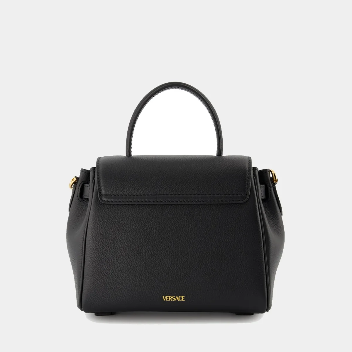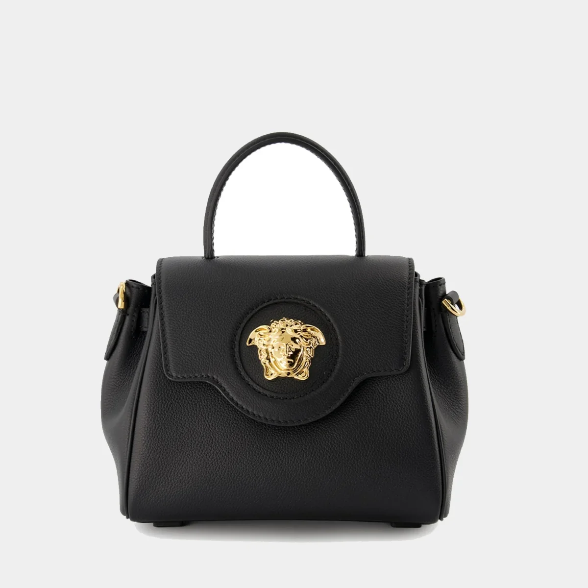 Sac La Medusa Versace collection Automne-Hiver 2024 pour Femme. Réalisé en cuir grainé. Article de couleur Noir. Une bandoulière en cuir ajustable et amovible, une bandoulière en chaîne amovible et Poignée fixe. Cet article est disponible en plusieurs déclinaisons.