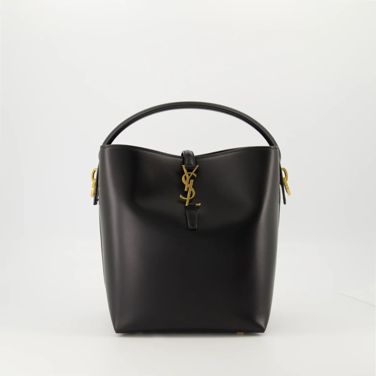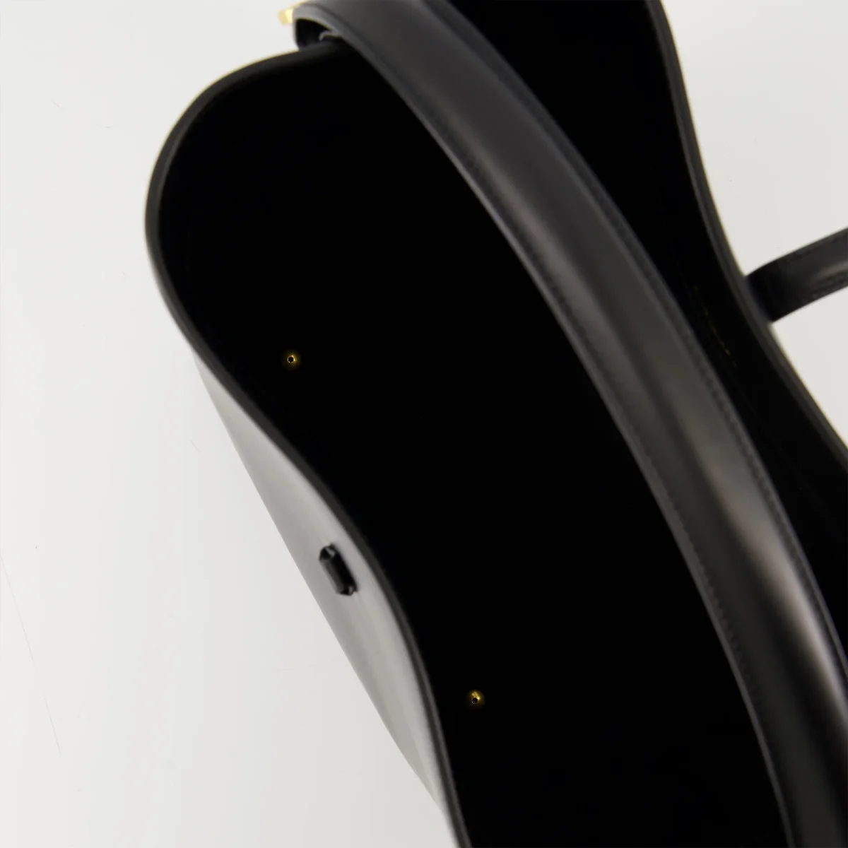 Sac le 37 noir de Saint Laurent, conçu pour les femmes, est réalisé en cuir de veau lisse. Il fait partie de la collection Automne-Hiver 2025, avec des détails élégants.