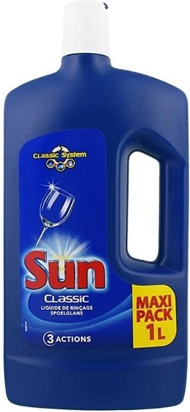 Sun Liquide de Rinçage Lave-Vaisselle Classic Triple Action 1l + Sun Nettoyant Lave-Vaisselle Classique 3 Doses Contre le Calcaire et les Dépôts de Graisse